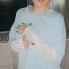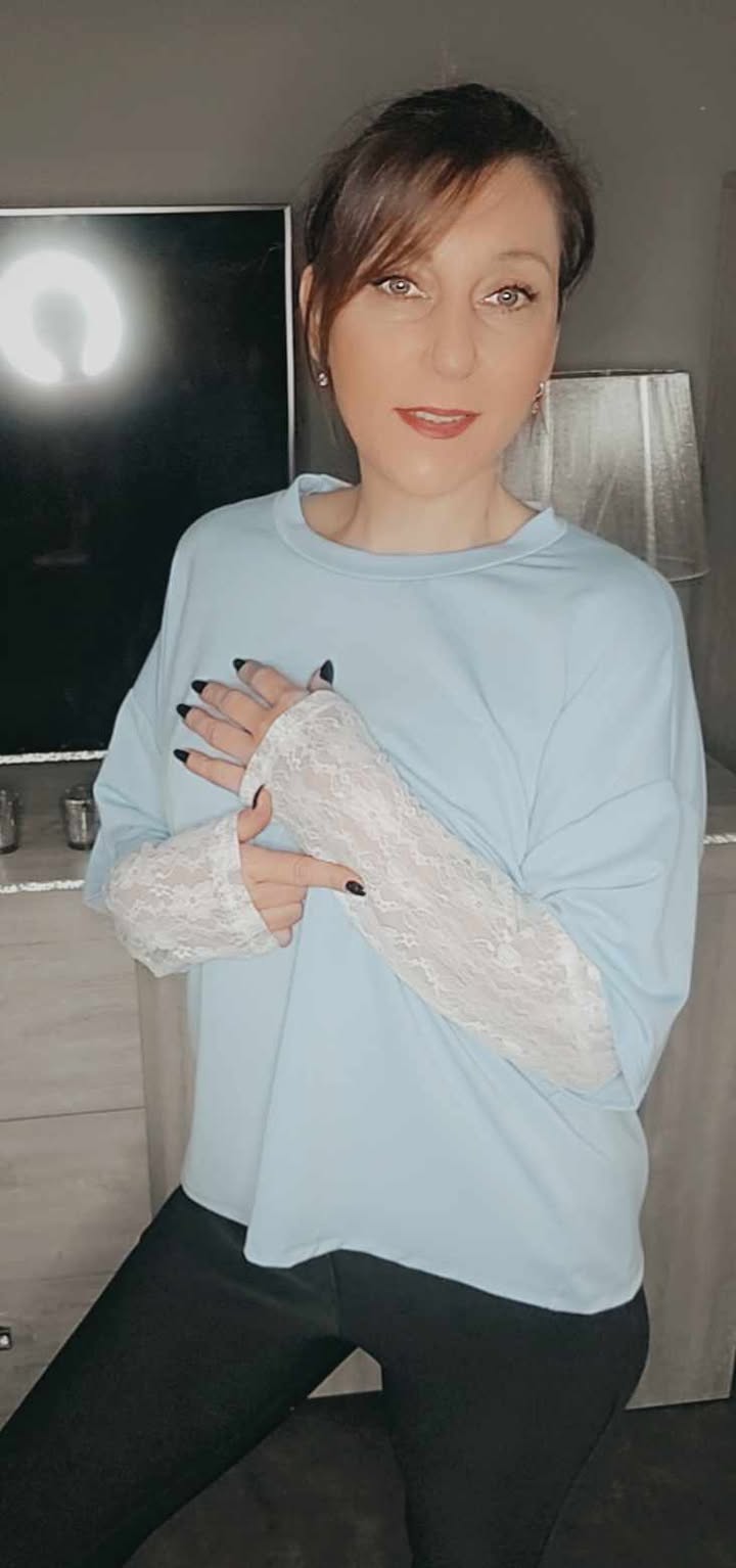 Blouse dentelle manches bleu ciel