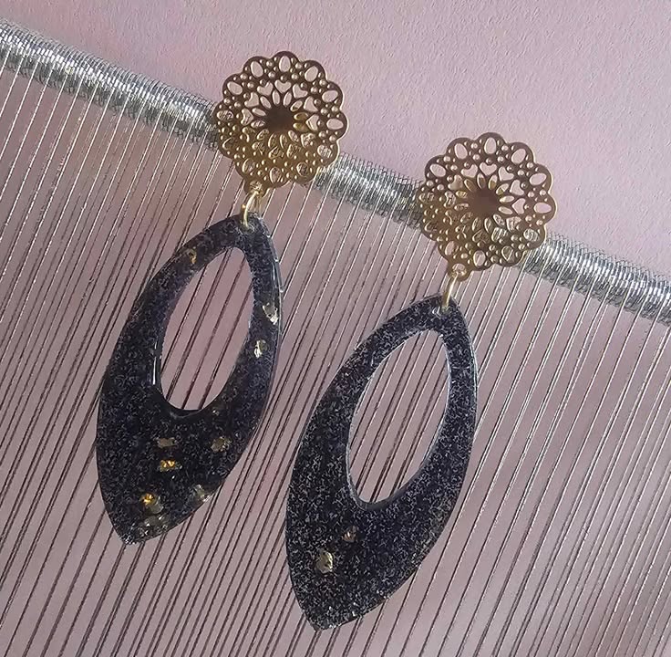 Boucle d’oreille goutte noir cristaux doré
