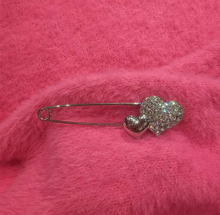 Broche coeur argentée strass