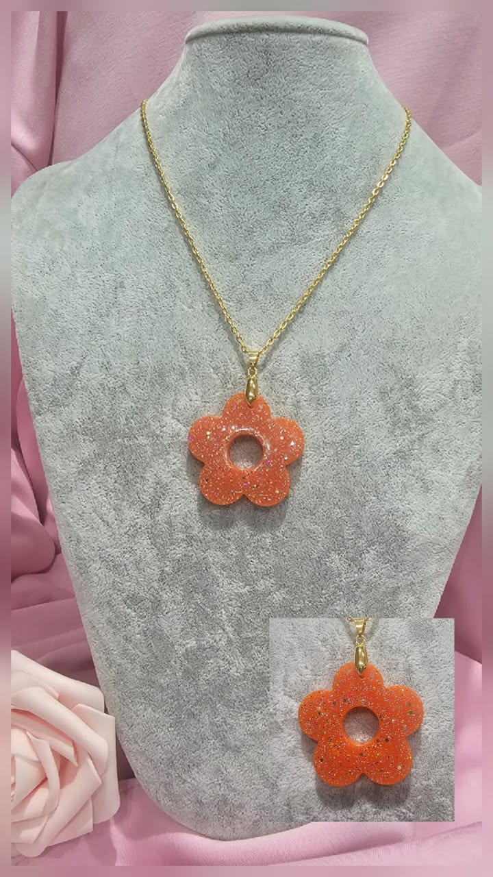 Collier fleur orange pailettes