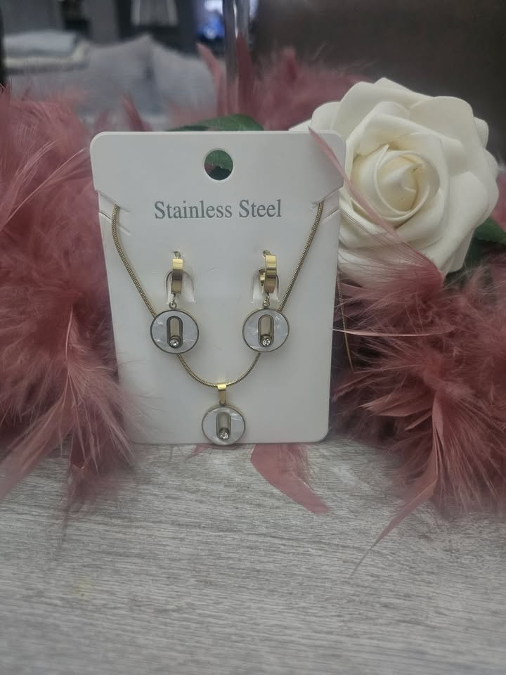 Dormeuses et collier doré blanc strass