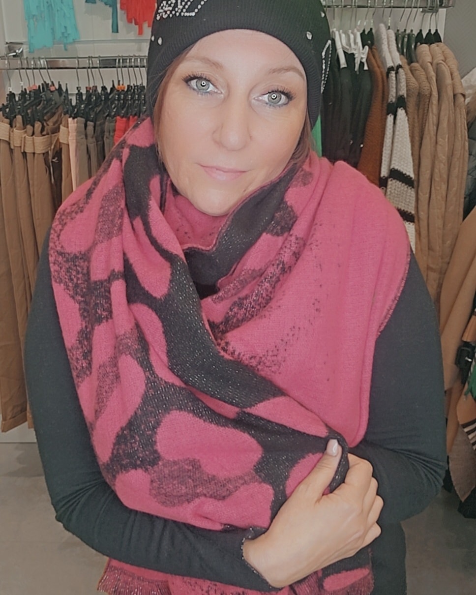 Echarpe framboise noir lisere argenté