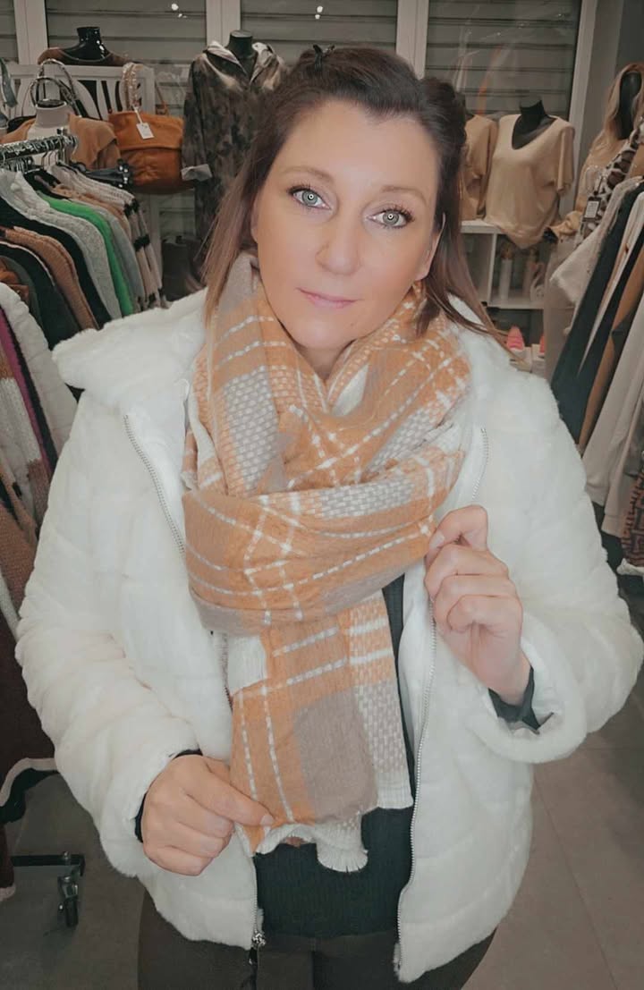 Echarpe taupe crème camel