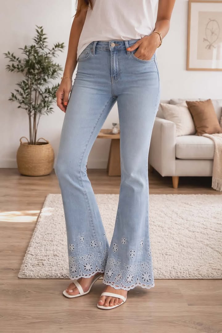 Jean flare broderie