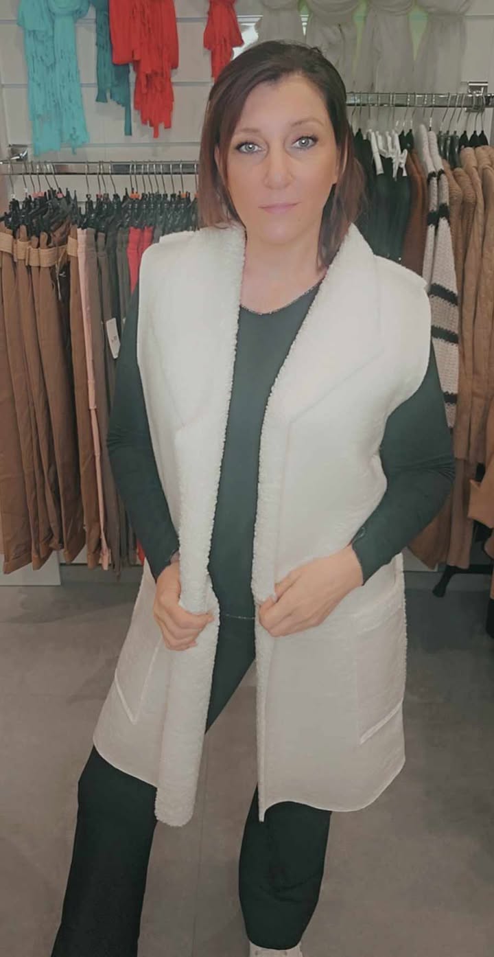 Veste sans manches bouclettes crème